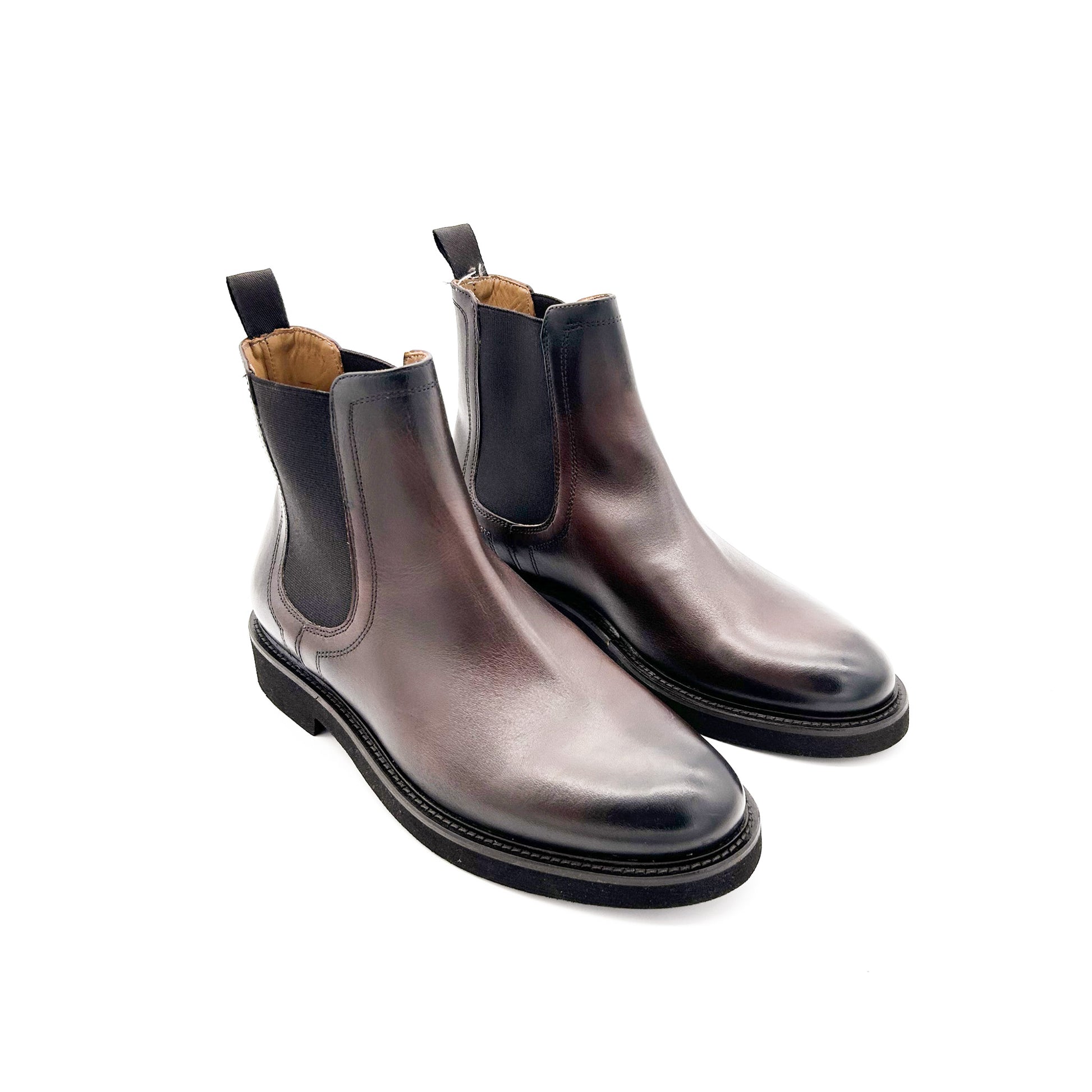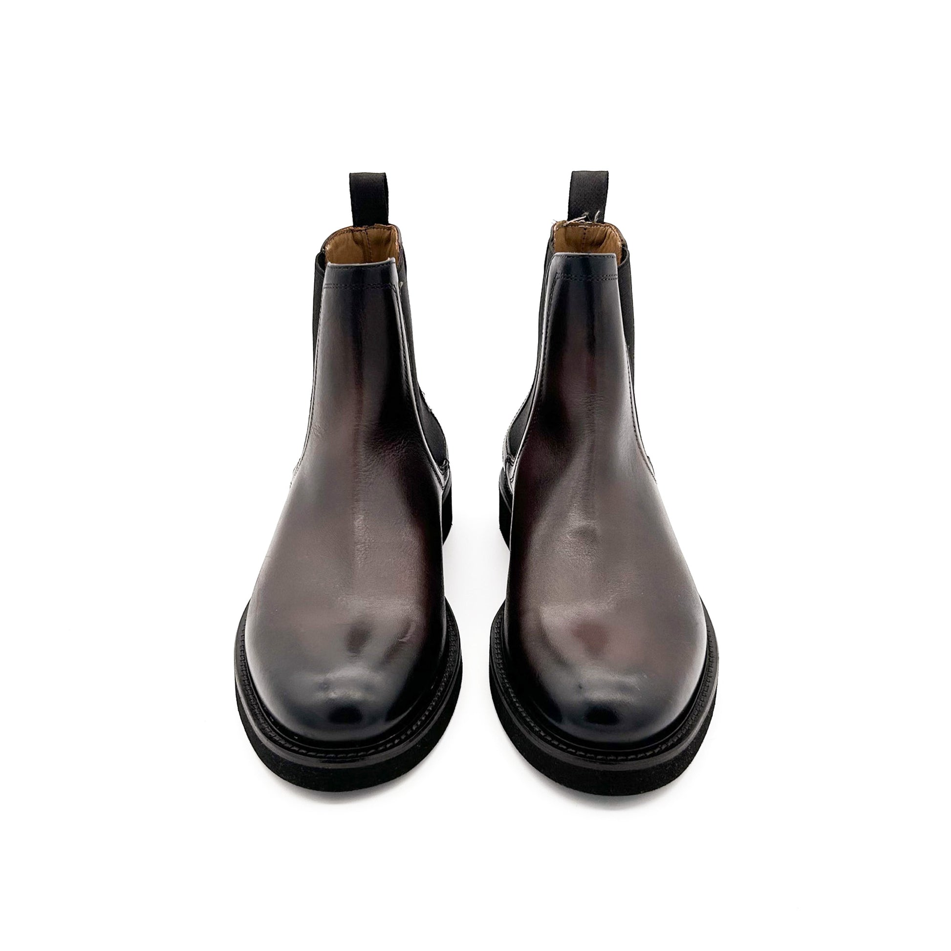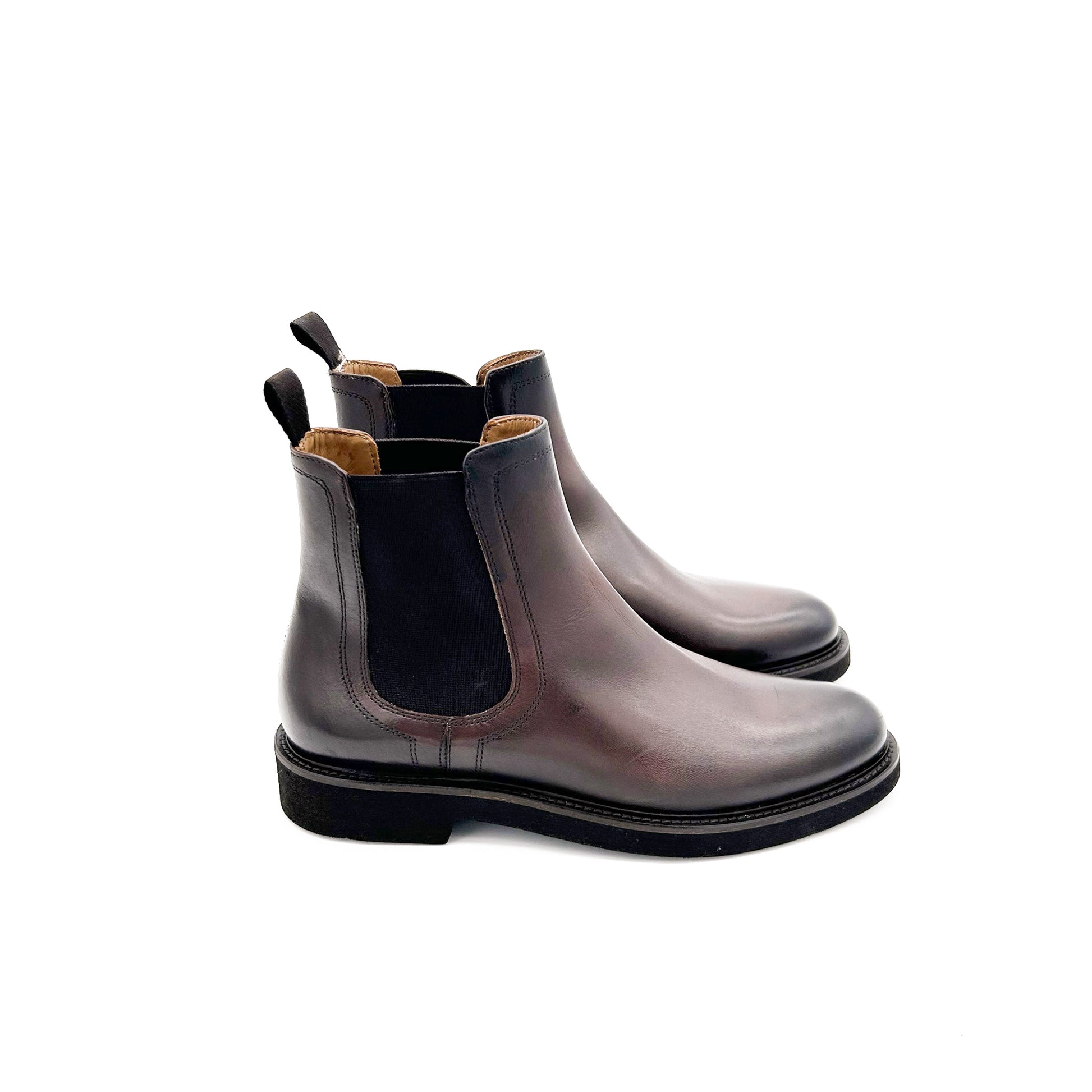 L'intramontabile stivaletto chelsea realizzato in pelle di vitello pieno fiore, la parte più esterna e pregiata, color testa di moro, nella sua versione più autentica e tradizionale. Fodera interna in pelle e suola in gomma ultrilight cucita a mano.