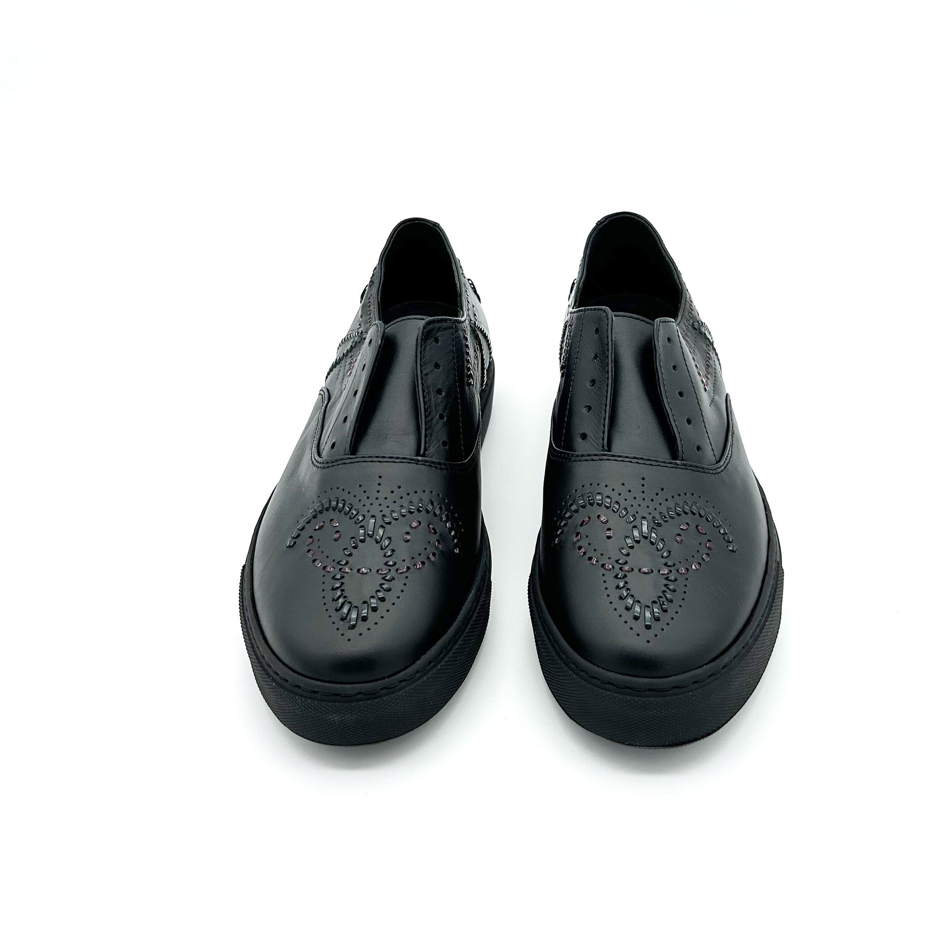 Iconica sneaker Hobo Sport con dettagli di forature impreziosite da ricami strass realizzata in morbida pelle nera. Caratterizzata da un fondo a cassetta, questa calzatura casual e sofisticata può essere indossata anche senza lacci grazie a pratici elastici interni.