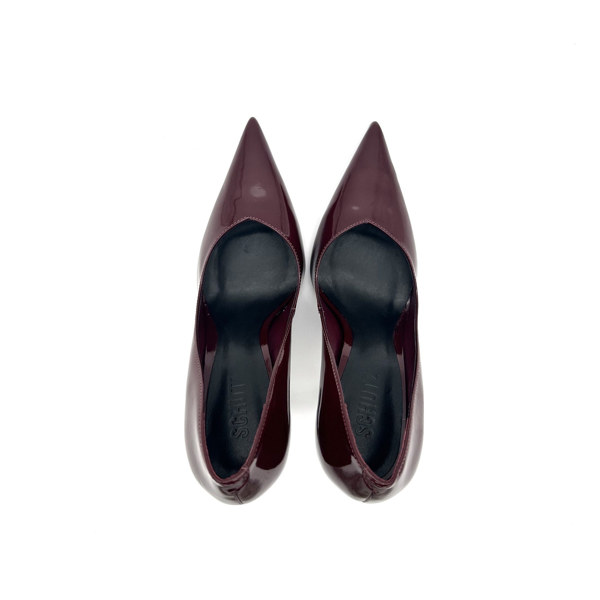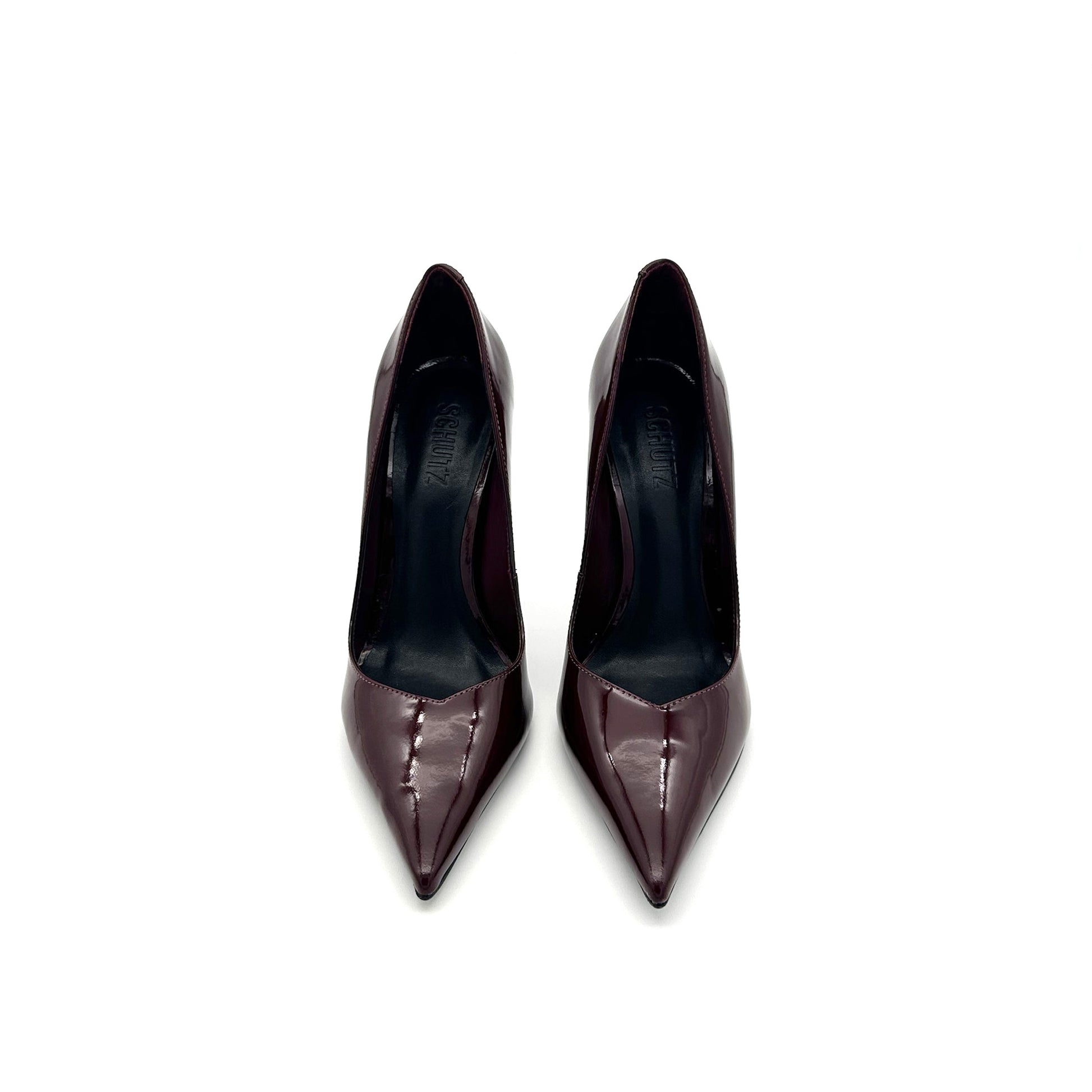 Questa décolleté in pelle verniciata bordeaux è più che elegante, è dominante. Il tacco scolpito, la punta affusolata, la scollatura e la finitura lucida le rendono difficili da ignorare. Si adattano ad ogni look, casual sofisticato, urbano, elegante, lo accompagnano e lo esaltano.