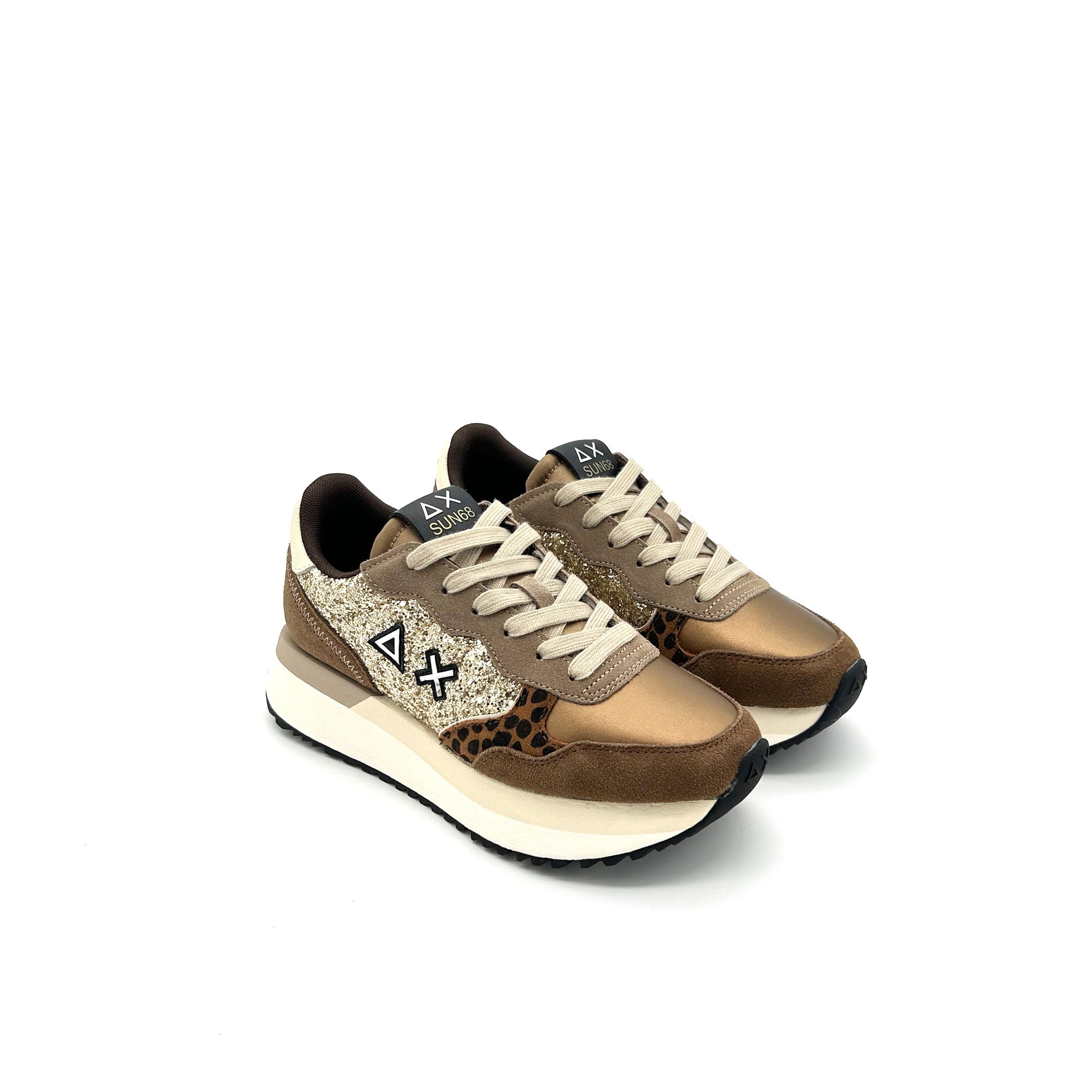 La sneaker Big Ally Glitter dall'attitudine casual chic con l'inserto sui lati tempestato di glitter luminosi. Impreziosita con dettagli logati SUN68 per una nota grintosa. La suola alta in gomma leggera sostiene i movimenti e slancia la silhouette.